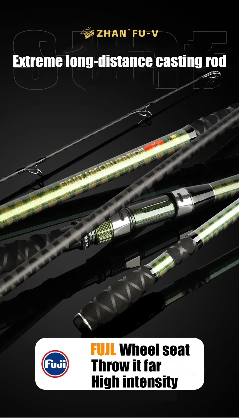CẦN CÂU SURF ZHAN FU-V 3 KHÚC LAM PHONG – CARBON 40T