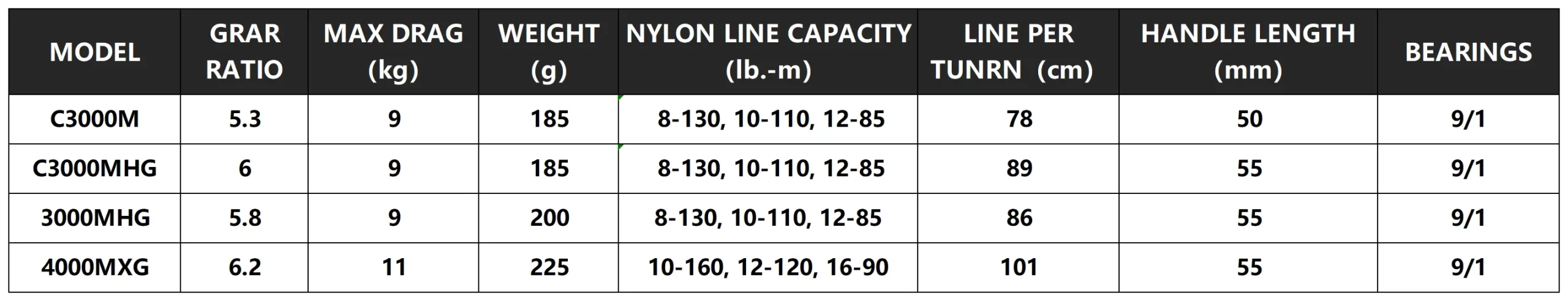 - Size: C3000M / C3000MHG / 3000MHG / 4000MXG
