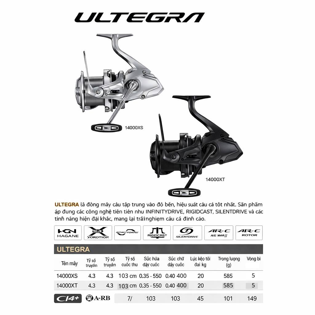 Shimano 24 Ultegra XR là phiên bản nâng cấp mới thuộc phân khúc cận cao cấp của Shimano. Máy nổi bật với độ mượt, độ bền và khả năng ném xa, cực kỳ phù hợp cho anh em câu lure, đặc biệt là cá chẽm và các dòng cá săn mồi.